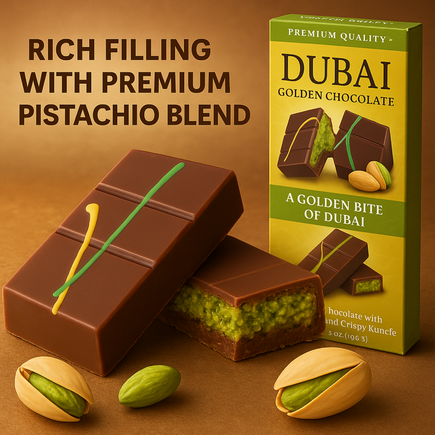 Dubai Chocolate Bar – Pistachio & Crispy Kunefe 3.53 oz