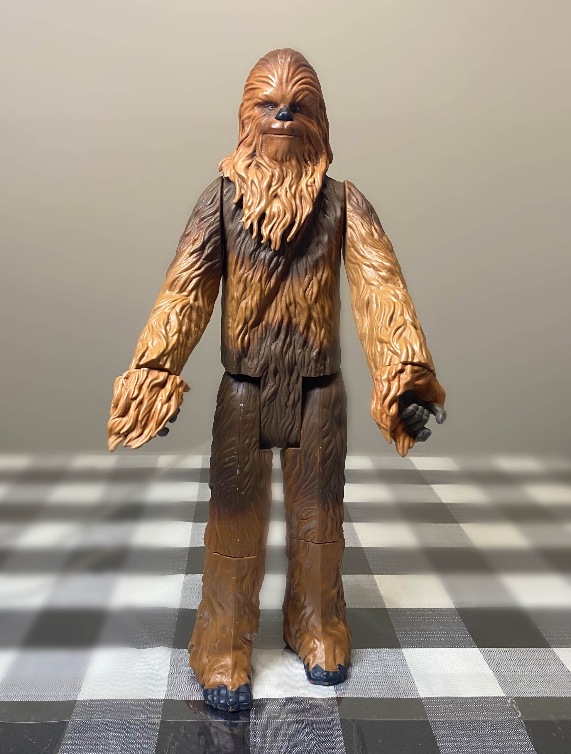 The Hasbro Star Wars Chewbacca action figure toy is a collectible item from the Star Wars franchise. Made by Hasbro, this Chewbacca figure is a part of the Star Wars product line and is designed to resemble the iconic Wookie character from the science fiction and horror genre. This toy is a must-have for any Star Wars fan looking to add a piece of the franchise to their collection. The Chewbacca figure is in great condition and would make a great addition to any Star Wars enthusiast's display.