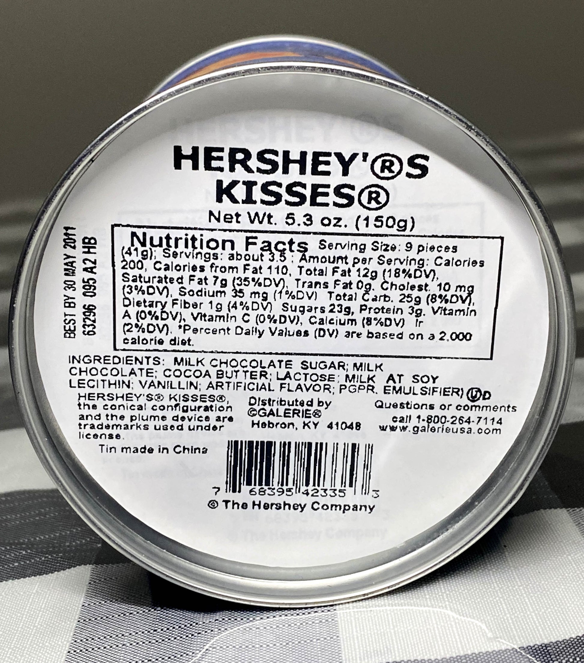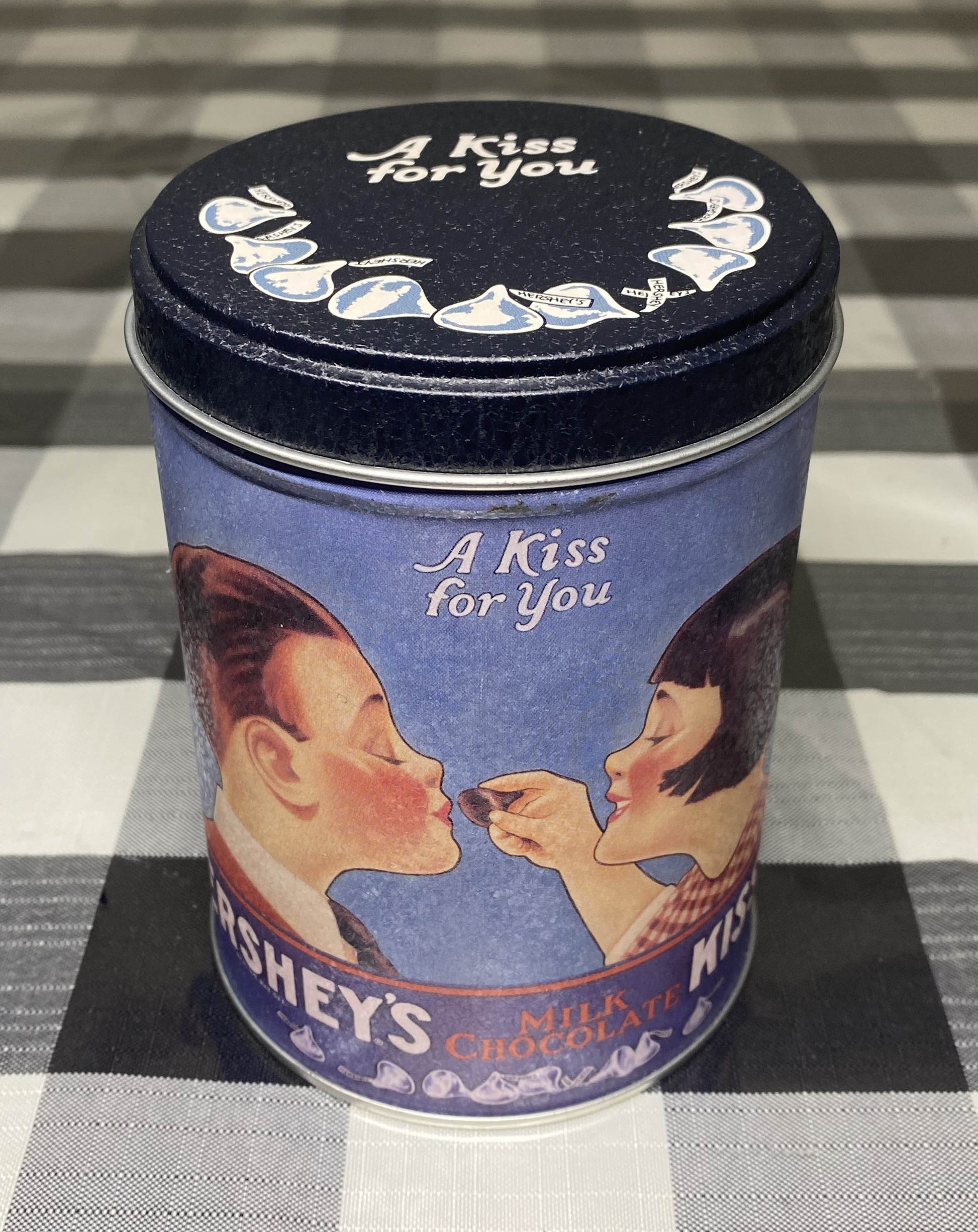 Hershey's Kisses Milk Chocolate Advertising Tin 1980 Dark Blue Beige Green