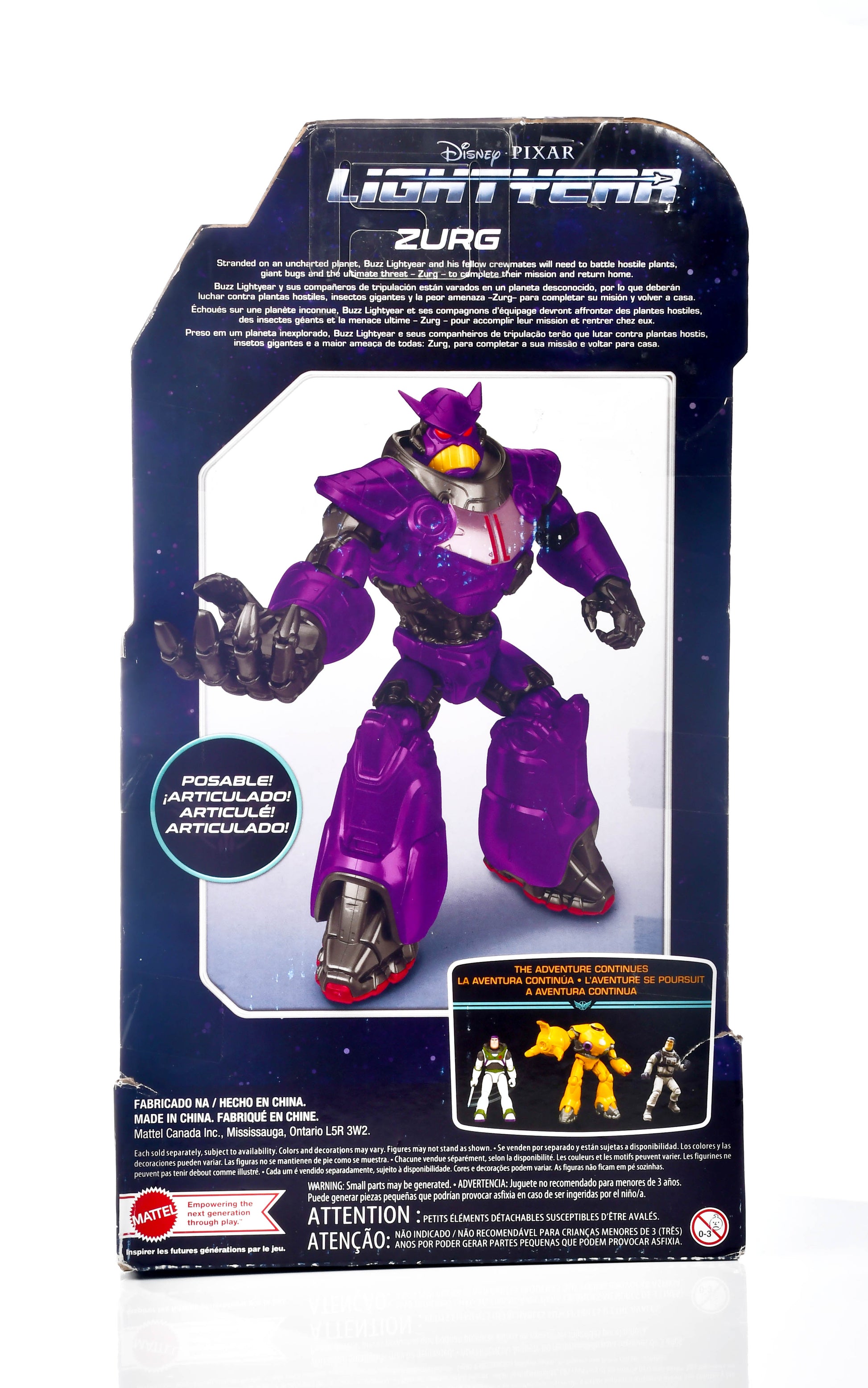 The Mattel Disney Pixar Lightyear Zurg Large Scale 12-in Figure is a purple plastic action figure based on the villain from the Toy Story franchise. This original licensed reproduction from 2021 features adjustable parts and comes in its original boxed packaging, making it a perfect addition to any Disney or Pixar fan's collection. Measuring 13.5 inches tall and suitable for ages 3 and up, this Zurg figure captures the essence of the character in stunning detail, making it a must-have for collectors and fans of the Toy Story series.