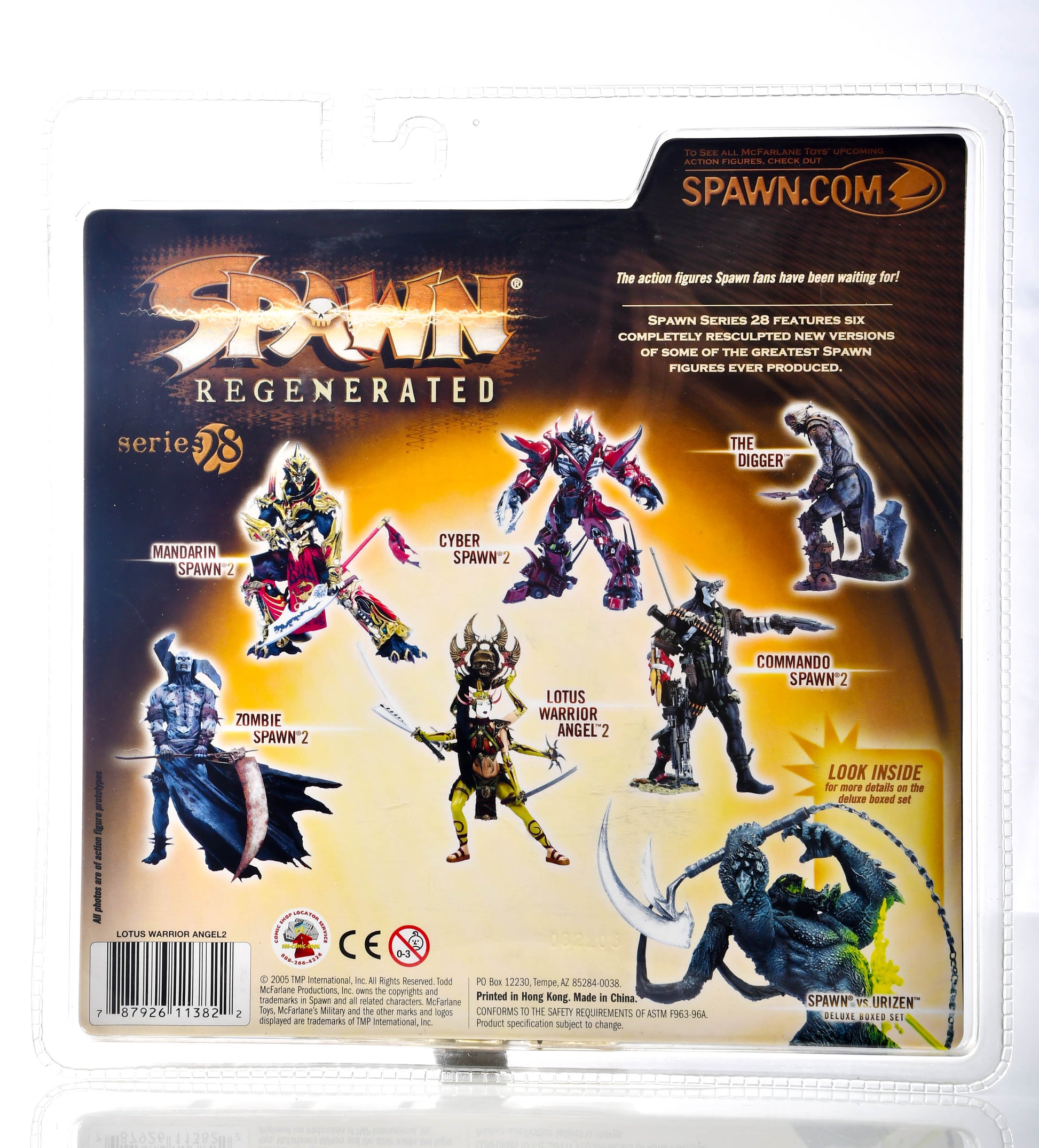 The McFarlane 2005 Spawn Series 28 Regenerated Lotus Warrior Angel 7" Figure is a collectible action figure from the franchise Spawn. Manufactured by McFarlane Toys, this original plastic figure stands at 6 inches tall and features the character Lotus Warrior Angel in a multicolor design. This 1:10 scale figure, produced in 2005 in China, is a sought-after item for fans of comic book heroes and action figures.