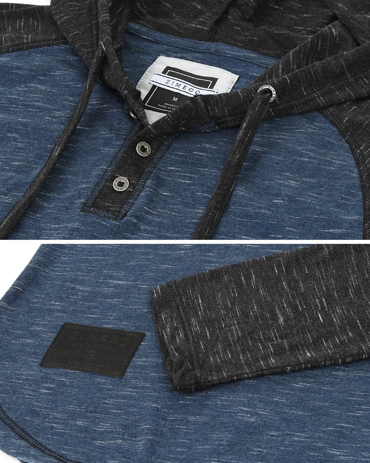 ZIMEGO Mens Long Sleeve Lightweight Hooded Henley – Color Block Pullover Hoodie for Casual Gym Workout Travel